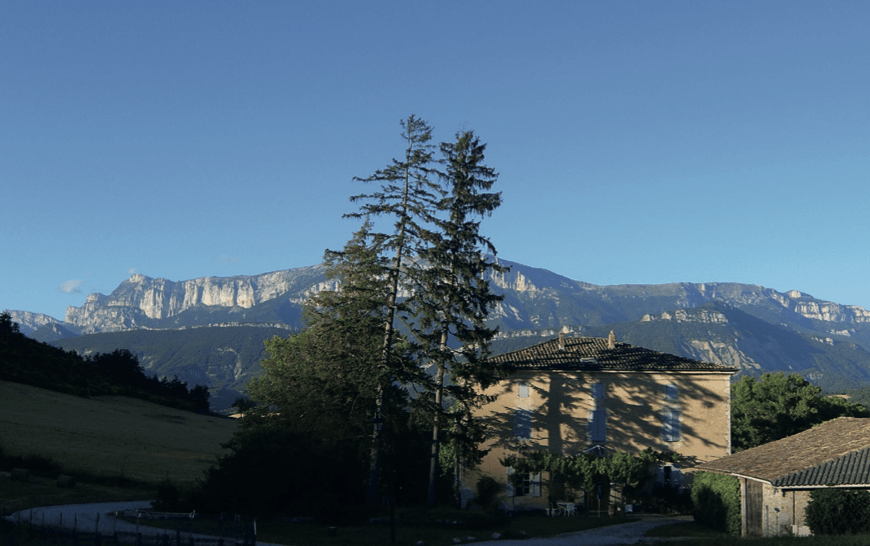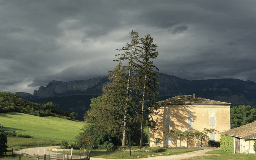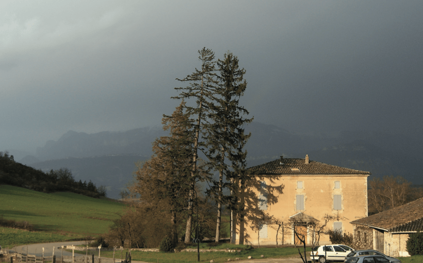 Camaïeux du ciel, danses de nuages, manteaux de neige, passages de la pluie, croissance, naissance et mort des herbes du champ. Un volet qui s’ouvre puis se referme. Une voiture qui passe, et disparaît. Les falaises du Glandasse, contreforts sud du Vercors, habillées d’orange, de rose ou de violet. Et la maison toujours, qui semble attendre…